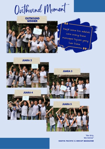 Outbound Moment Outbound Moment Kerja sama tim adalah cara orang biasa mencapai tujuan yang luar biasa. "We Ship, We Deliver" KARYA PACIFIC & GROUP MAGAZINE