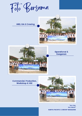 Foto Bersama Foto Bersama HRD, GA & Crewing Operational & Keagenan Commercial, Production, Workshop & HSE "We Ship, We Deliver" KARYA PACIFIC & GROUP MAGAZINE